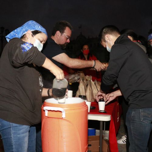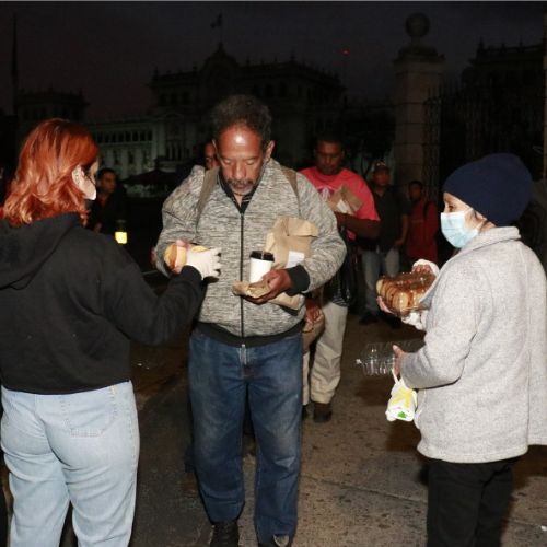 - Parque Central, en la zona 1 de la capital: En este lugar comparten con las personas en situación de calle, entregándoles un pan, una bebida caliente y una galleta o snack.