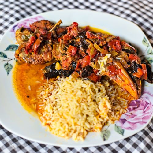 Descripción de la foto para personas con discapacidad visual: En la imagen aparece un plato de Chalkun acompañado de arroz. (Créditos: FB/ Rony Rodríguez).