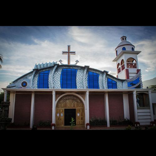 Este templo llama la atención entre la población de este municipio, ya que tiene una estructura en forma de pez y, sobre el mismo, se encuentra la cruz. El pez es una representación de la actividad económica ancestral de los habitantes de El Estor.