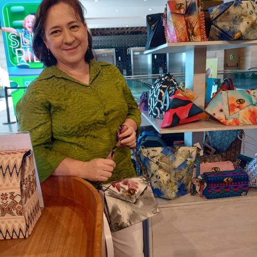 La diseñadora de Bolsas Gatsu, la guatemalteca Susana Mejía se inspiró en el arte japonés del origami para crear carteras únicas.