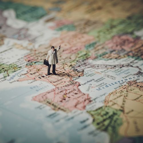 Descripción de la foto para personas con discapacidad visual: Muñeco de un hombre sobre un mapa de Francia. (Créditos: Canva).