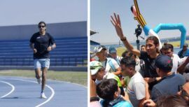 El atleta olímpico Luis Grijalva inauguró la pista de tartán en el estadio La Democracia y compartió con niños y adultos.