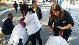 Un grupo de guatemaltecas que estudian para cultoras de belleza cortaron el cabello gratis a personas que viven en las calles de Quetzaltenango.