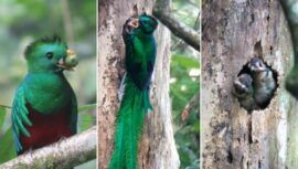 Mira las hermosas fotos y video de una pareja de Quetzales alimentando a sus pichones captadas en un área protegida de San Marcos.