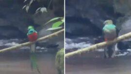 Te compartimos los videos que capturan a un Quetzal hembra y un Quetzal macho bañándose individualmente en un río de San Marcos.