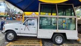 En la Iglesia de San Francisco el Grande, se exhibe el papamóvil que utilizó el Papa Juan Pablo II en su tercera visita al país.