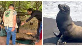 Especialistas rescataron león marino en Champerico y lo trasladaron al Centro de Conservación Marina en Taxisco para que se recupere.