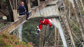 Conoce la historia del mayor Héctor Chacón, un bombero guatemalteco que salta de los puentes de Guatemala disfrazado de Santa Claus para Navidad.