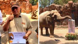 El Zoológico la Aurora entregó reconocimiento a Trompita y a su cuidador por la labor que realizan dentro del establecimiento en la ciudad capital.