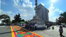 Observa las fotografías de la Alfombra en la Reforma 2022, se trata de la alfombra más grande del mundo que se realizó en la Ciudad de Guatemala.