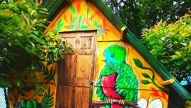 El Hotel Casa Turquesa es un hospedaje temático a orillas del Lago Petén Itzá en Guatemala que cuenta con espacios coloridos y con diseños a mano.