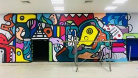 Mira los avances de los coloridos murales que la artista guatemalteca Marinés Lacayo "Milah" está pintando en el Aeropuerto Mundo Maya, en Petén.