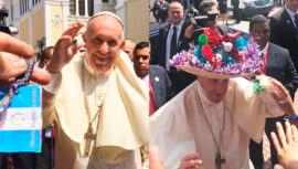 El Papa Francisco recibió un colorido sombrero de Esquipulas, que fue regalado por los guatemaltecos en la Jornada Mundial de la Juventud en Panamá.