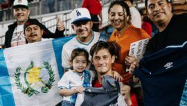 El portero guatemalteco Nicholas Hagen compartió con aficionados que llegaron al estadio de Houston para verlo jugar con Columbus.