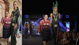 Una guatemalteca lució el traje de Santiago Sacatepéquez durante la pasarela de Antonio Chávez en la Semana de la Moda de Nueva York 2024.