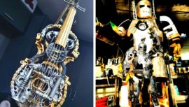 Edgar Echeverría sorprende con sus esculturas hechas de metal reciclado entre las que destacan instrumentos musicales y personajes de animes y cine.
