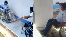Agustin Corrales se anotó como voluntario para ayudar a construir el hospital temporal de Petén, su discapacidad no le ha impedido aportar.
