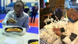 El equipo del restaurante Tre Fratelli regaló cenas a personas sin hogar que se encontraban en el albergue municipal que se habilitó en Mixco.