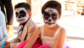 En la fiesta de disfraces y entrega de dulces para niños en un centro comercial de la Ciudad de Guatemala.