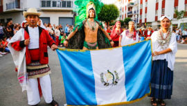 Integrantes del Ballet Moderno y Folklórico Nacional de Guatemala participan en festival folklórico en Europa, específicamente en España y Francia.