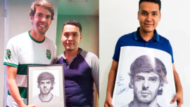 El exfutbolista brasileño Kaká estuvo en Guatemala, oportunidad que fue aprovechada por Edgar Lemus para regalarle un retrato que hizo a lápiz.