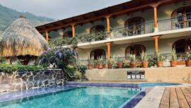 Hotel Villa Santa Catarina a orillas del Lago de Atitlán es un hospedaje con piscina y jacuzzi de aguas termales relajantes.