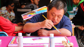 Niños y adultos que forman parte del Hogar Virgen del Socorro, en Sacatepéquez, pintaron varias obras de arte que serán parte de una Expo-Venta.