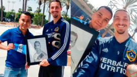 Zlatan Ibrahimovic, reconocido jugador del LA Galaxy de la MLS, recibió un retrato hecho con lápiz por el artista zacapaneco Edgar Lemus.