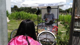 El maestro guatemalteco Gerardo Ixcoy, Profe Lalito, adaptó un triciclo para impartir clases a sus alumnos durante la pandemia.