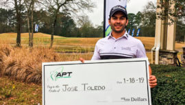 El jugador guatemalteco José Toledo ganó el primer lugar del Lake Windcrest Championship 2019 de golf celebrado en Magnolia, Texas, Estados Unidos.