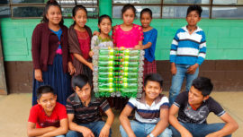 Alumnos de la Escuela Oficial Rural Mixta Chiyó, departamento de Alta Verapaz, elaboraron basureros ecológicos con material reciclado. ¡Qué pilas!