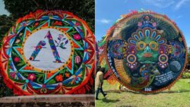 El Festival de las Flores ha organizado una exhibición de barriletes de Sumpango hechos por barrileteros en el Bosque de Antigua Cerveza en Antigua.