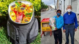 La organización de los abuelitos heladeros ofrecen un combo de verano que contiene una hielera en forma de mochila y helados de distintos sabores.