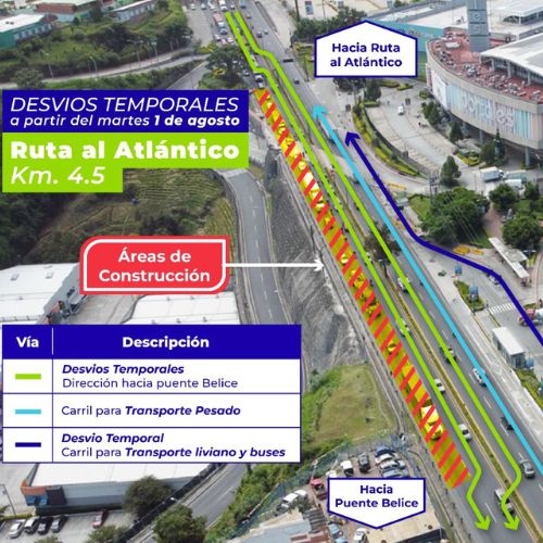 La Municipalidad de Guatemala anunció que se realizarán cambios temporales en carriles en ruta El Atlántico, zona 18 de Ciudad de Guatemala.