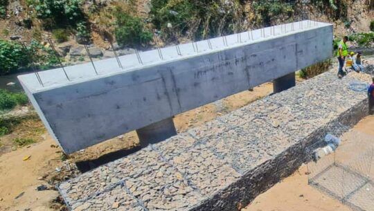 Covial realiza reparaciones y construcción de bases para la instalaciones del puente bailey al lado del puente Villa Lobos 1.