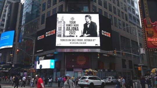 El tour Blanco y Negro del guatemalteco Ricardo Arjona fue promocionado en el Times Square de Nueva York, uno de los destinos más visitados del país.