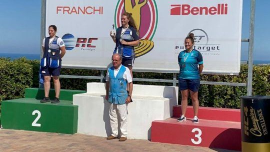 La tiradora guatemalteca Waleska Soto ganó medalla de bronce durante su participación en foso olímpico, en la Copa Liano Rossini 2021, Italia.